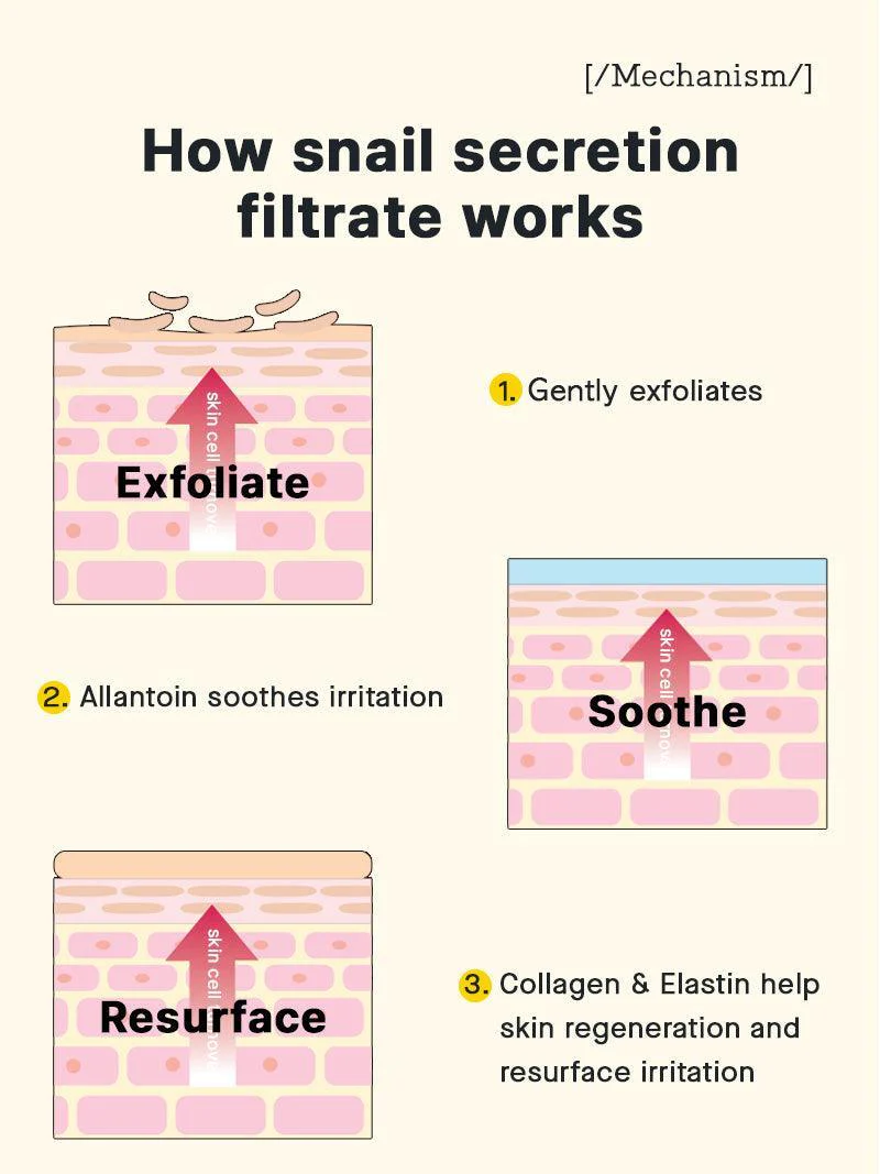 💧 غنیشده با ۹۶٪ عصاره تقویتکننده پوست از فیلتر ترشحات حلزون